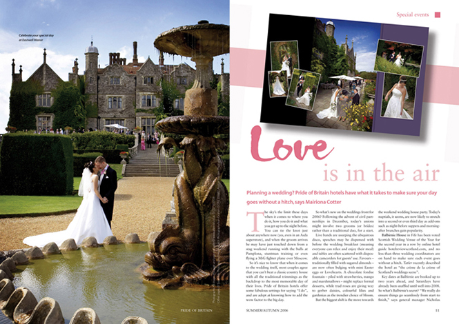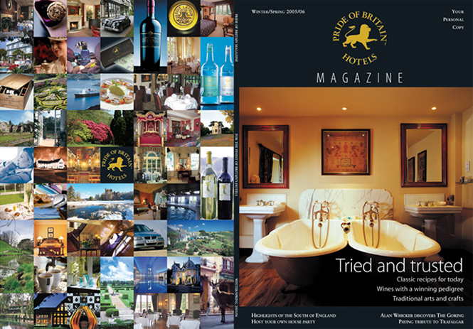 Whilst I worked at Freeway media and latterly Clear Media, one of their major clients was Pride of Britain. Pride of Britain is a privately owned hotel consortium based around the British Isles. During my time working with Pride of Britain, we rebranded their logo and all commercial materials, from business cards, brochures, advertising and their twice-yearly magazine.